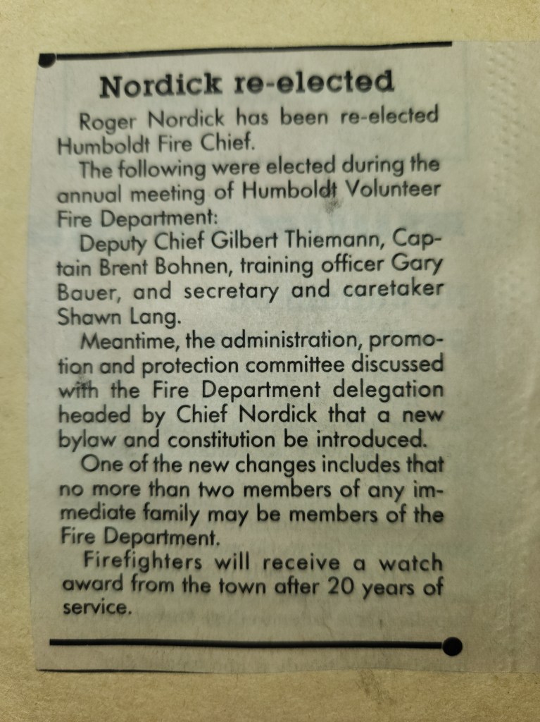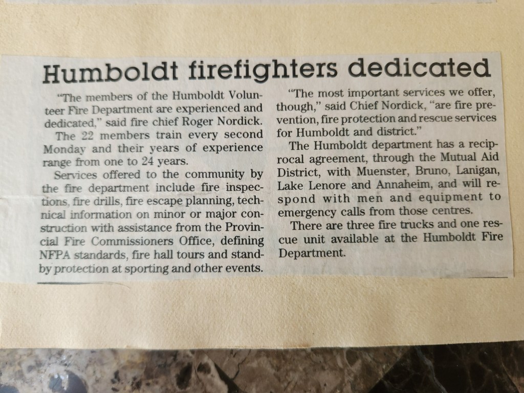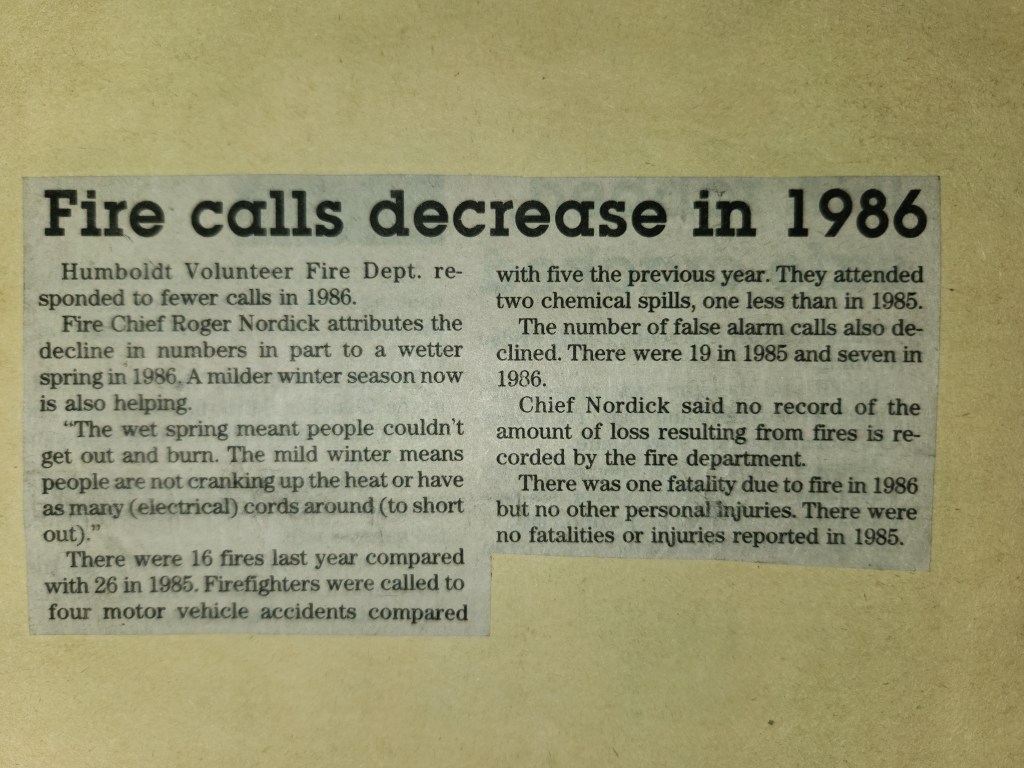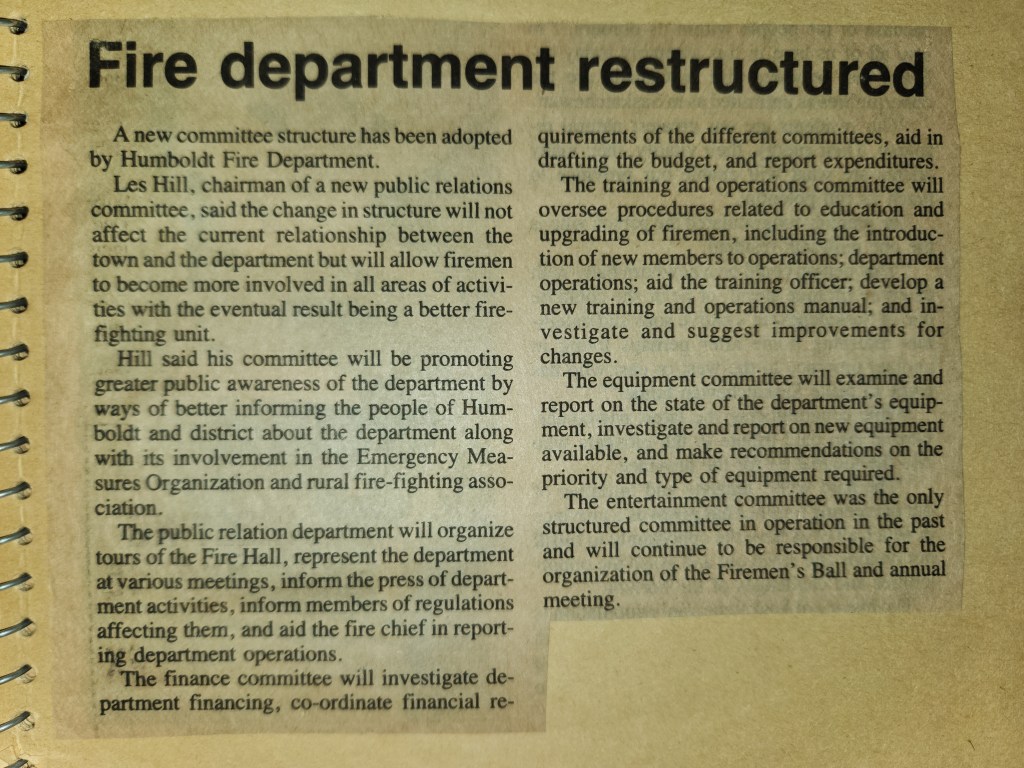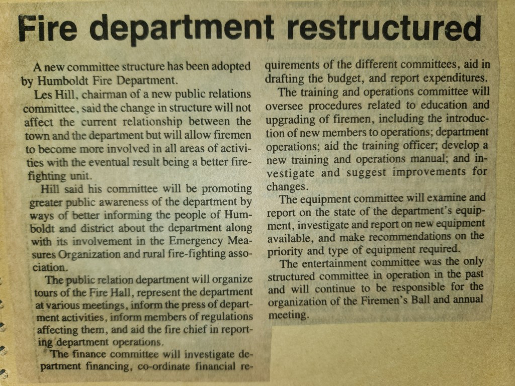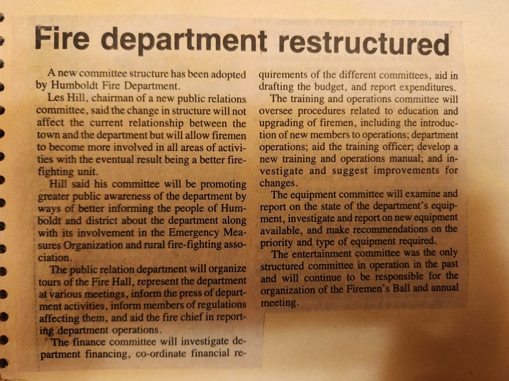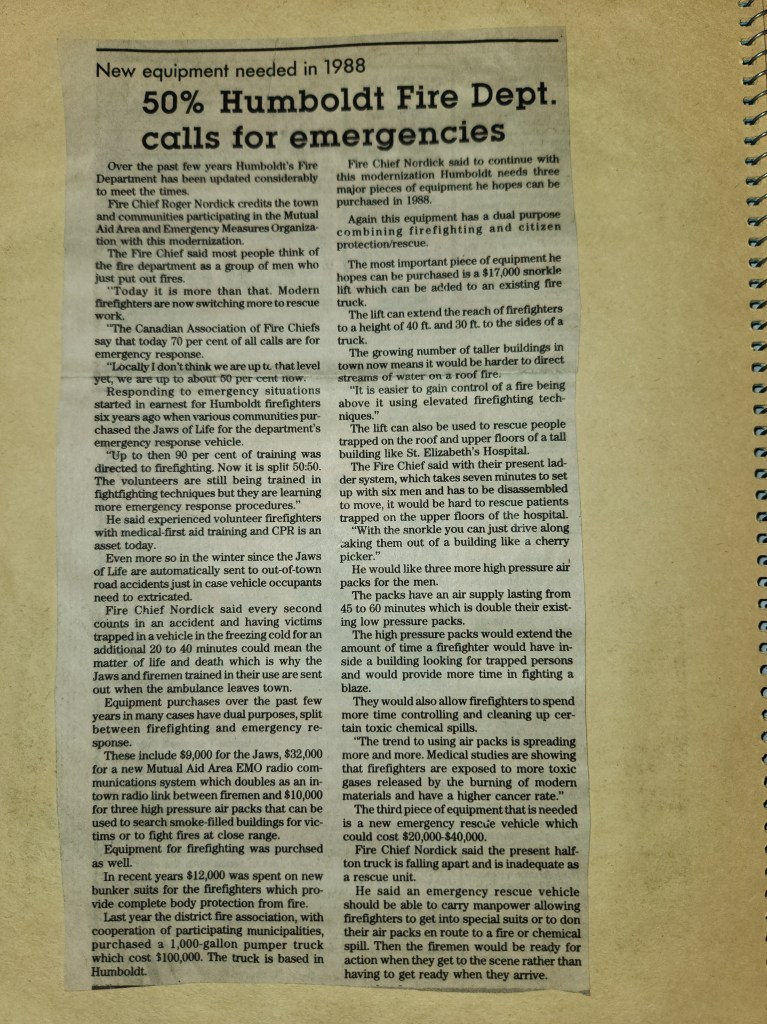 For many years, the Humboldt Journal was the trusted media source in Humboldt and area. Most of the calls that the Humboldt Fire Department responded to were a popular news story for the Journal. The Humboldt Journal has since moved on, but DiscoverHumboldt.com and The Bolt 107.5 FM have taken over as the digital age has moved our news sources from print, to web based and radio. Here are just some of the clippings from The Humboldt Journal over the years.