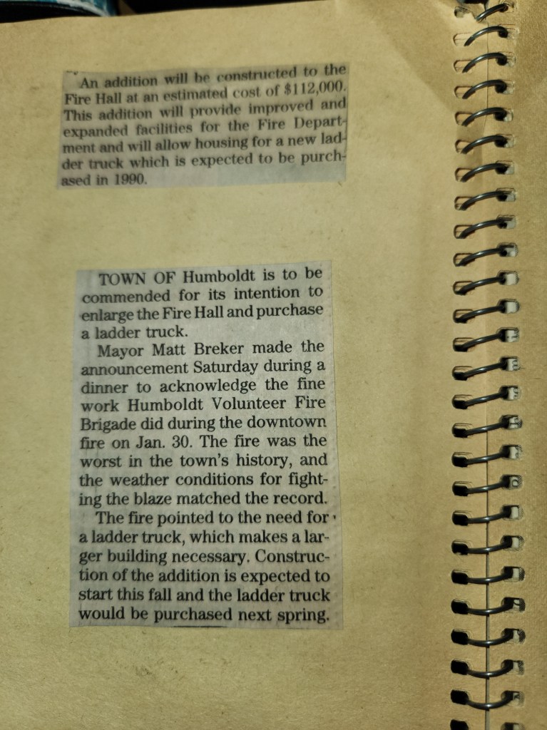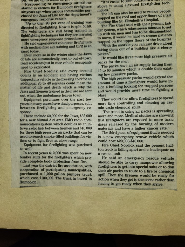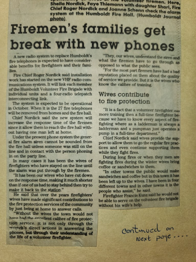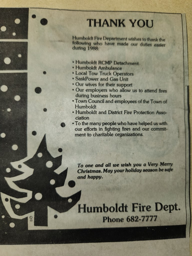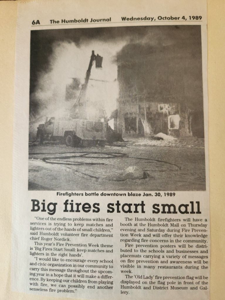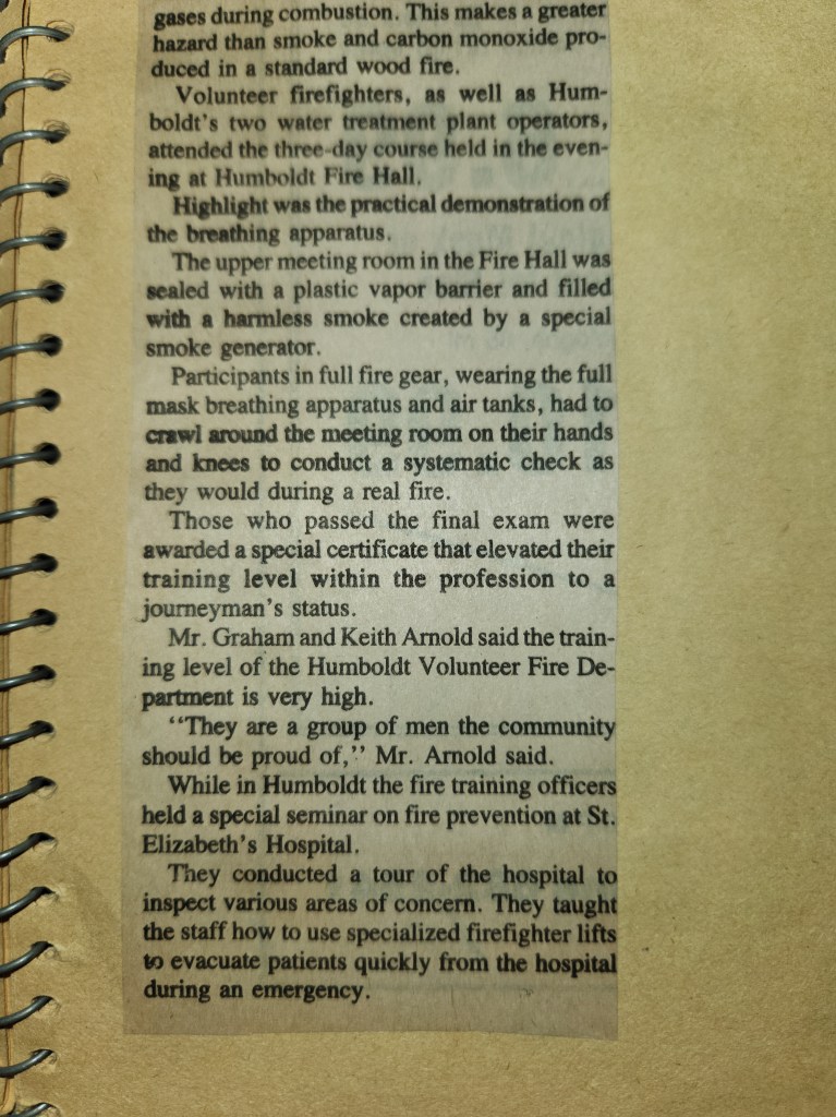 For many years, the Humboldt Journal was the trusted media source in Humboldt and area. Most of the calls that the Humboldt Fire Department responded to were a popular news story for the Journal. The Humboldt Journal has since moved on, but DiscoverHumboldt.com and The Bolt 107.5 FM have taken over as the digital age has moved our news sources from print, to web based and radio. Here are just some of the clippings from The Humboldt Journal over the years.