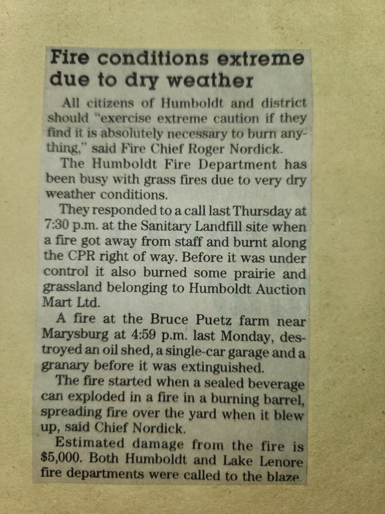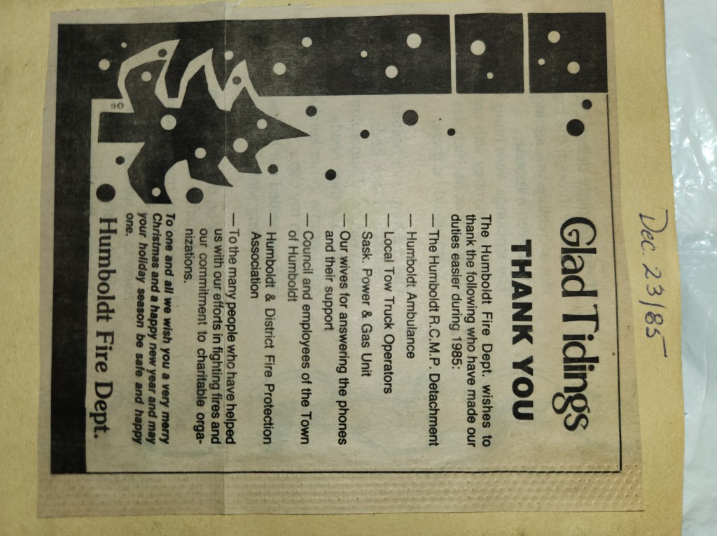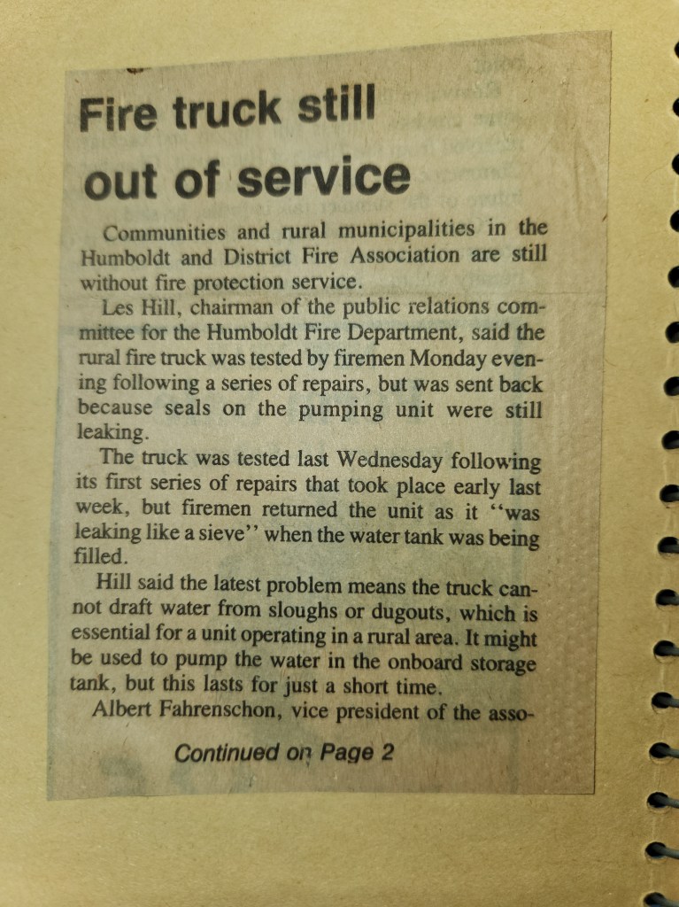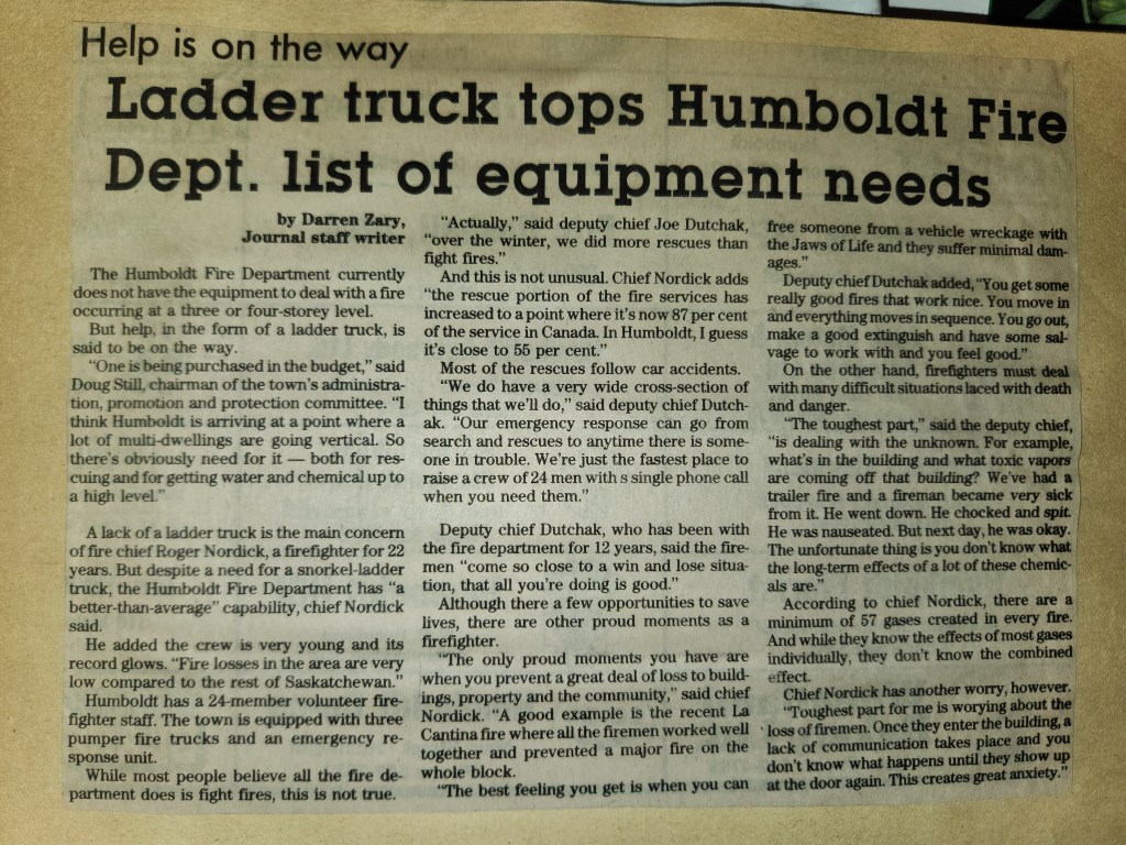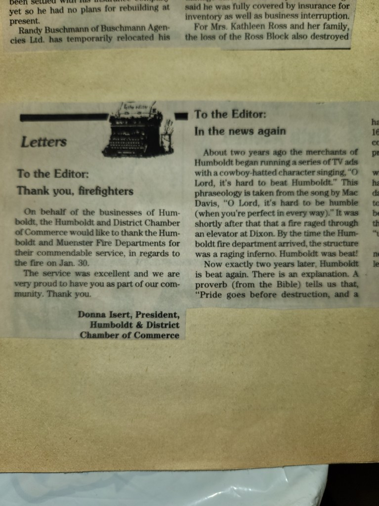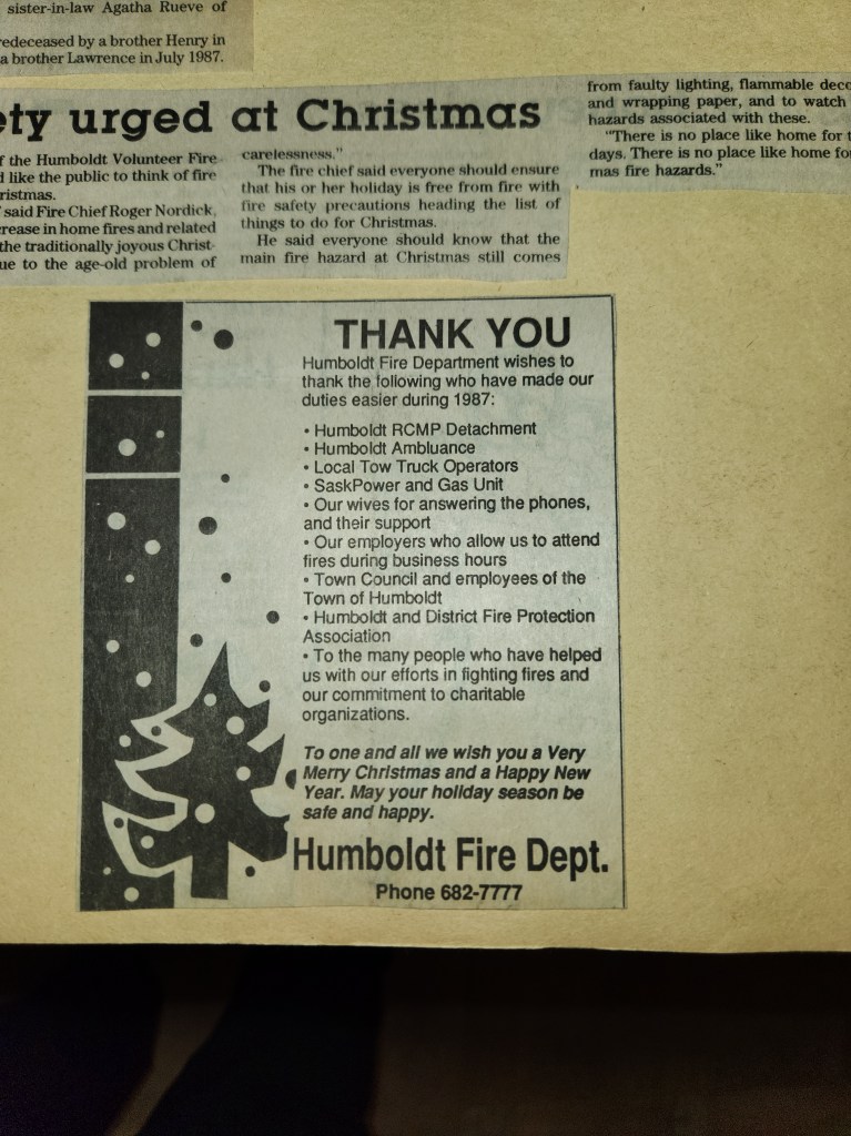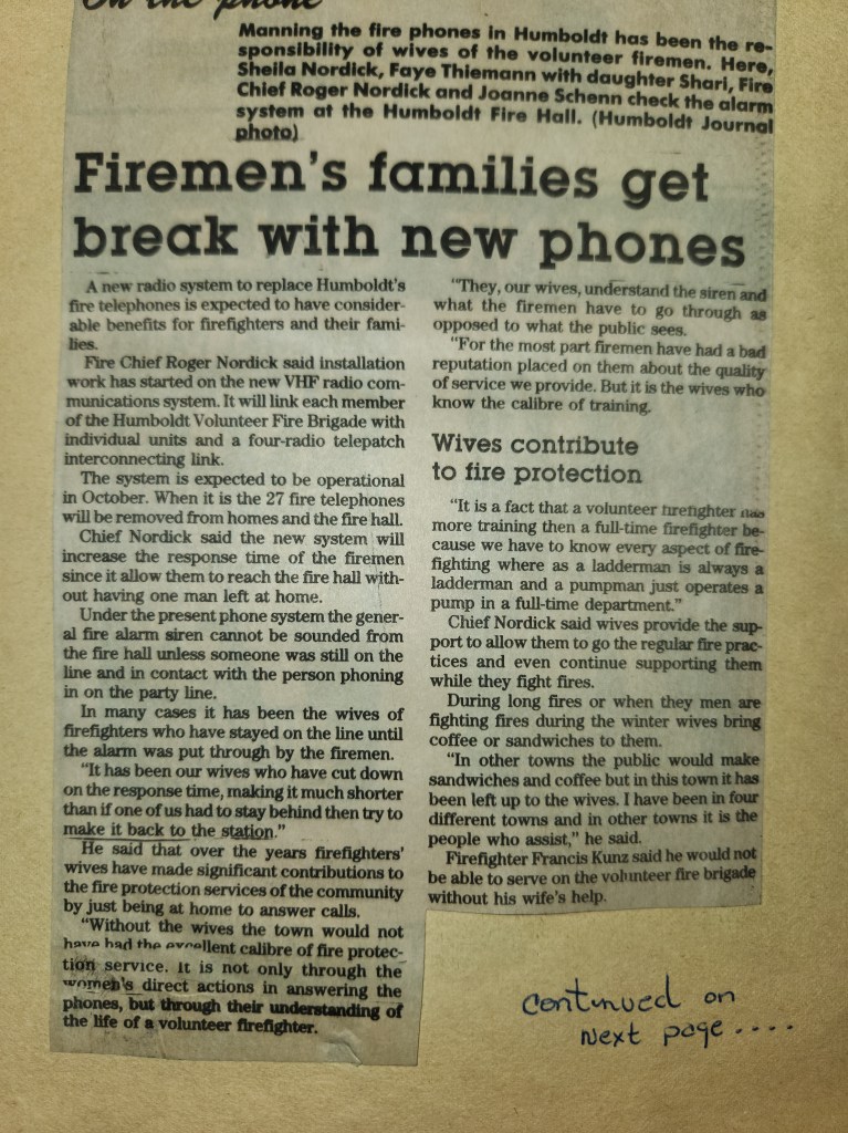 For many years, the Humboldt Journal was the trusted media source in Humboldt and area. Most of the calls that the Humboldt Fire Department responded to were a popular news story for the Journal. The Humboldt Journal has since moved on, but DiscoverHumboldt.com and The Bolt 107.5 FM have taken over as the digital age has moved our news sources from print, to web based and radio. Here are just some of the clippings from The Humboldt Journal over the years.