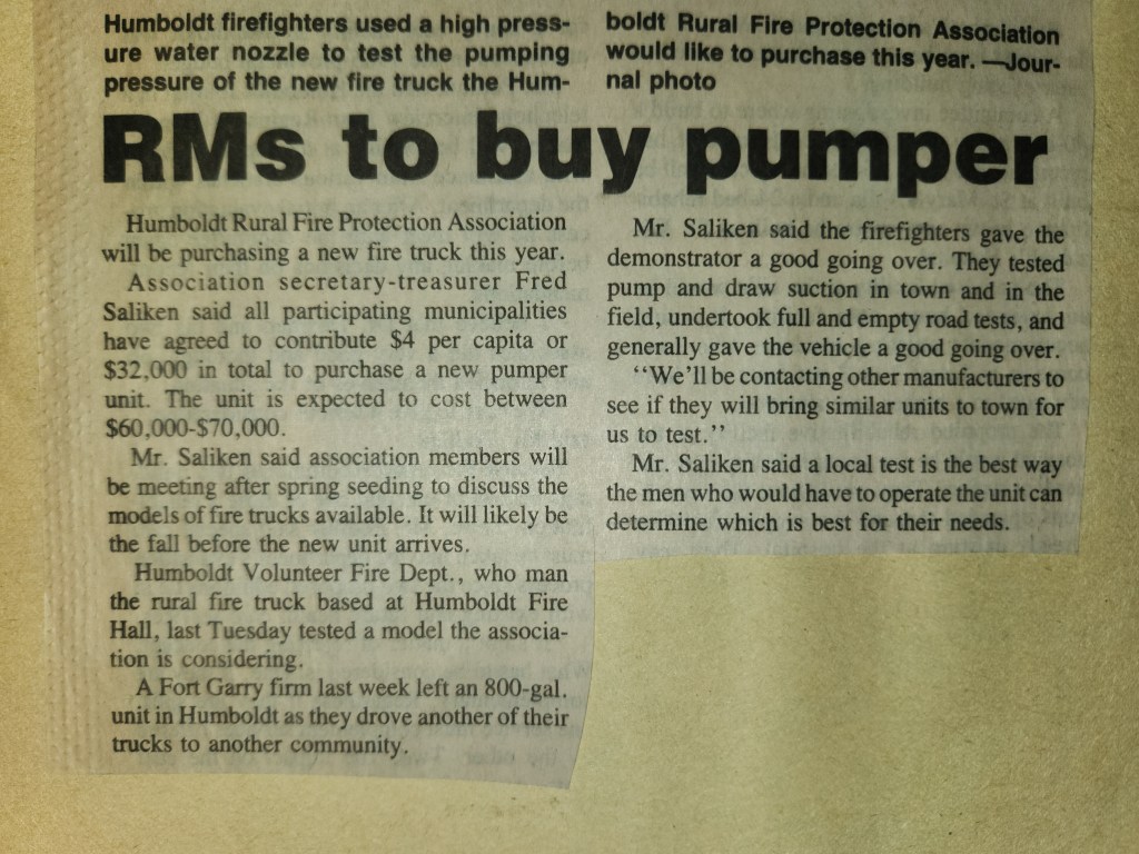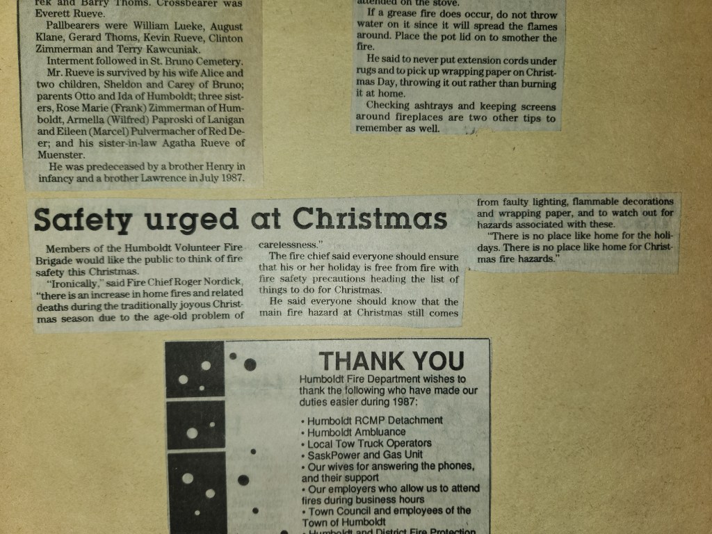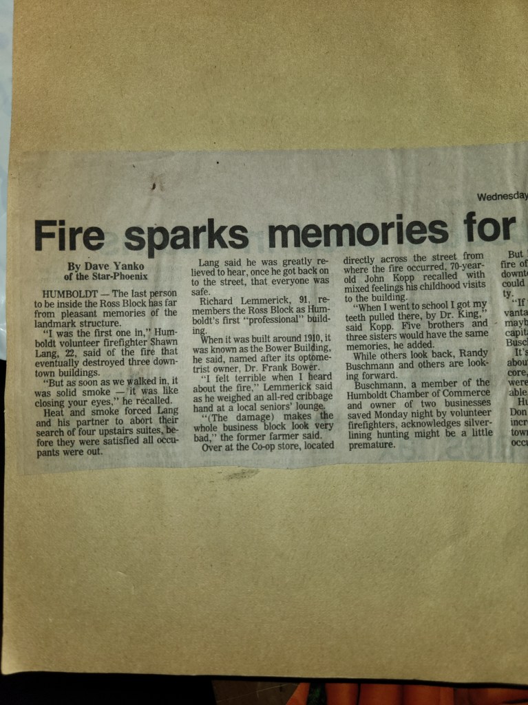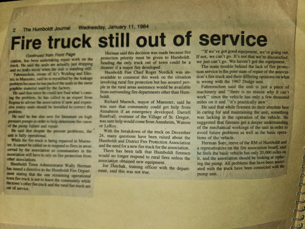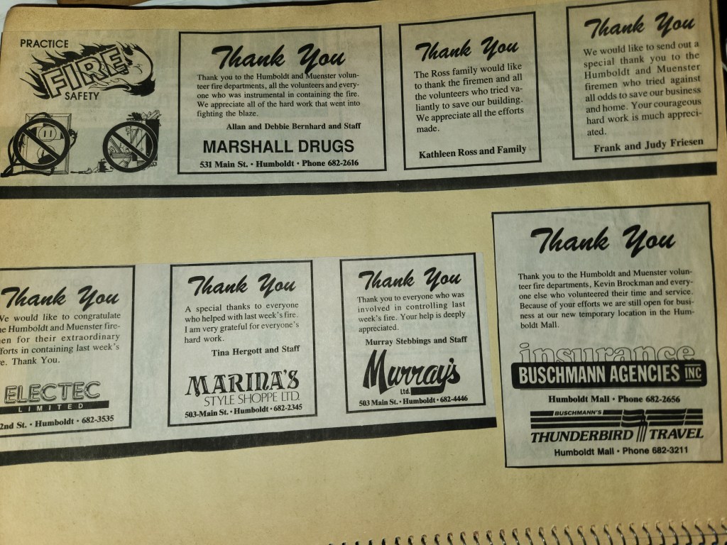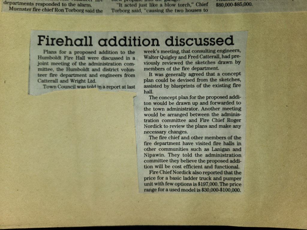 For many years, the Humboldt Journal was the trusted media source in Humboldt and area. Most of the calls that the Humboldt Fire Department responded to were a popular news story for the Journal. The Humboldt Journal has since moved on, but DiscoverHumboldt.com and The Bolt 107.5 FM have taken over as the digital age has moved our news sources from print, to web based and radio. Here are just some of the clippings from The Humboldt Journal over the years.