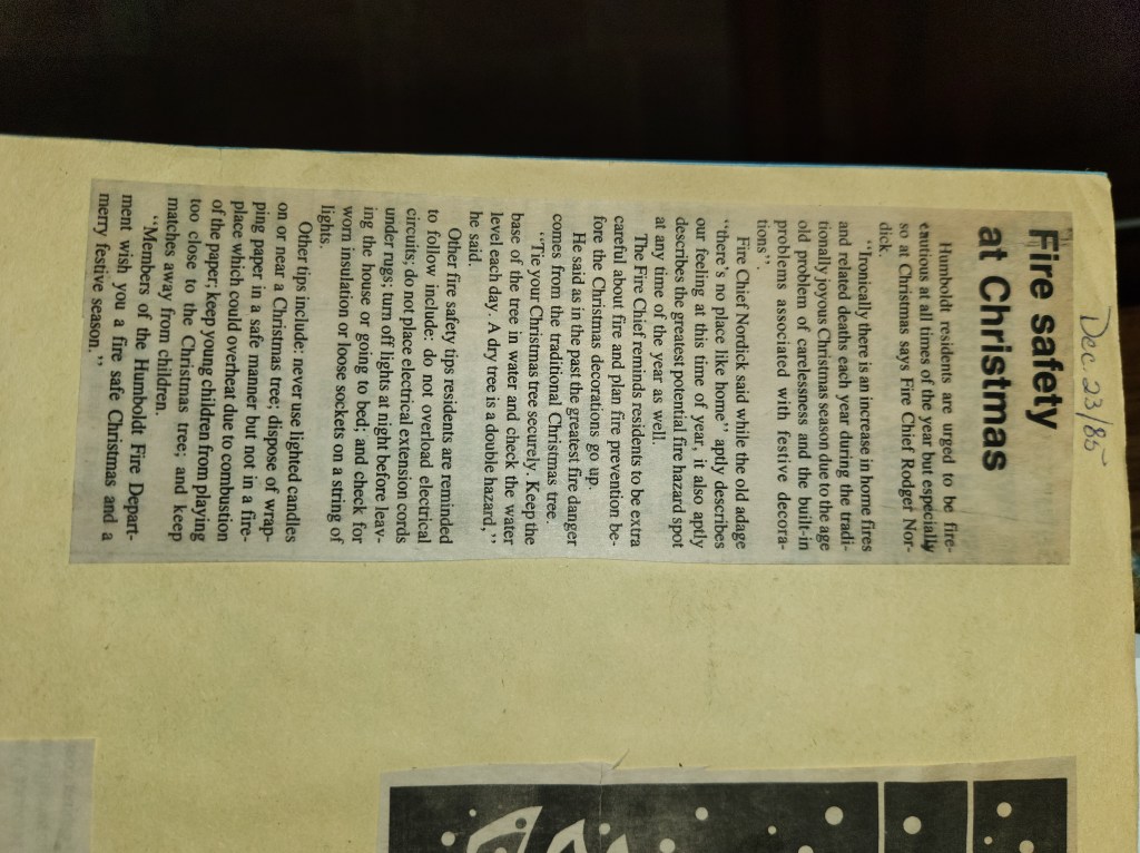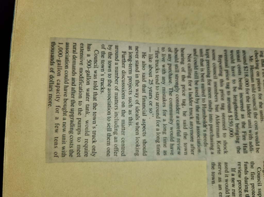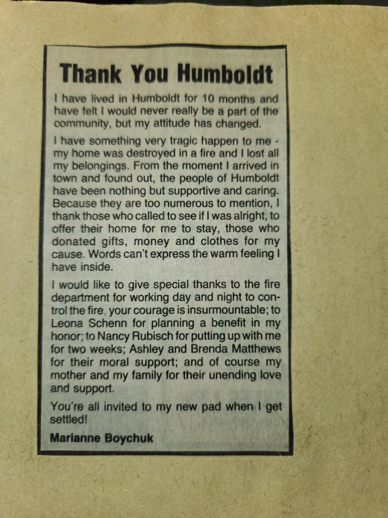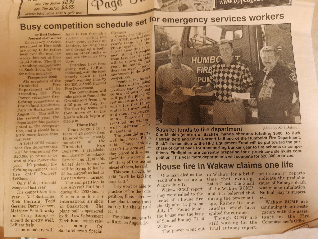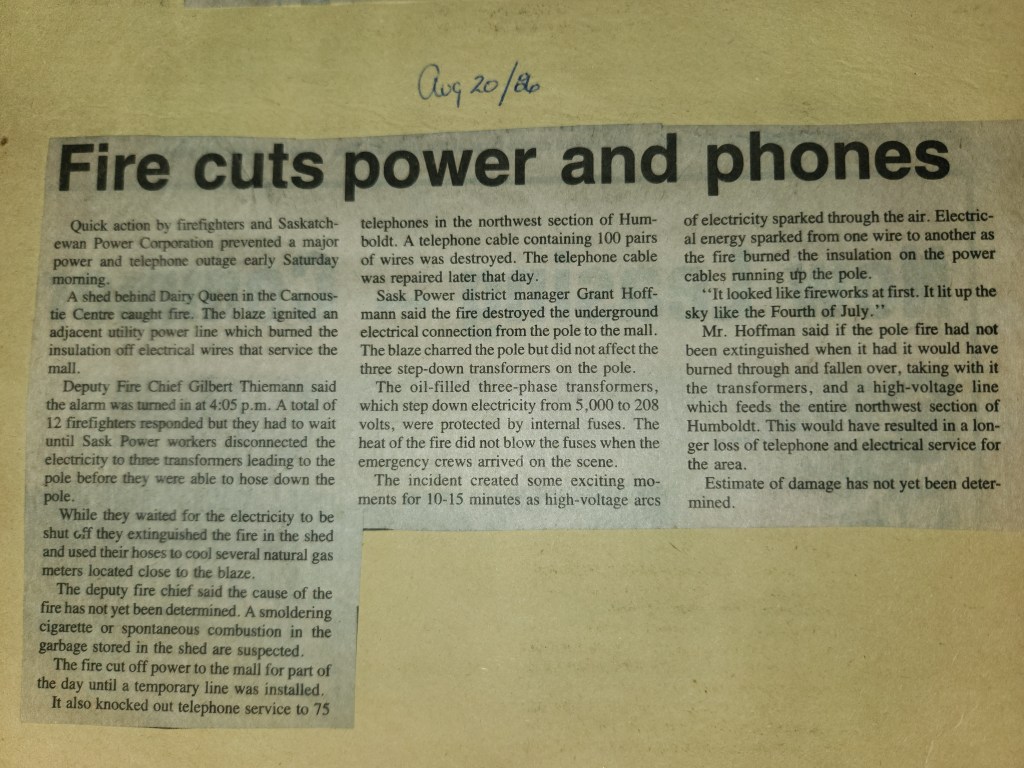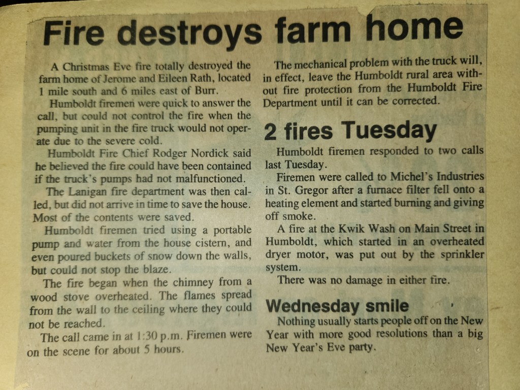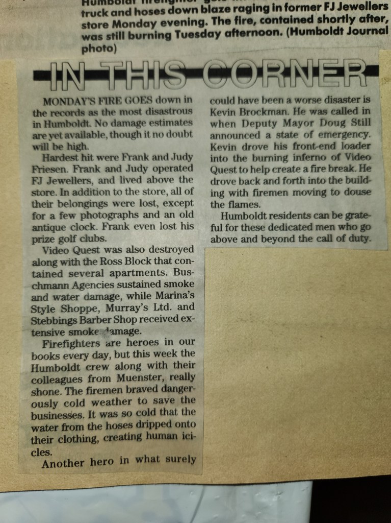 For many years, the Humboldt Journal was the trusted media source in Humboldt and area. Most of the calls that the Humboldt Fire Department responded to were a popular news story for the Journal. The Humboldt Journal has since moved on, but DiscoverHumboldt.com and The Bolt 107.5 FM have taken over as the digital age has moved our news sources from print, to web based and radio. Here are just some of the clippings from The Humboldt Journal over the years.