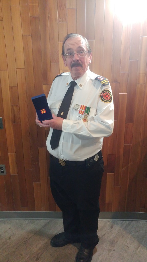- I have served in our Fire Service for 35 Years. I was awarded the Fire Services Exemplary Service Medal from the Governor of Canada for 20 years of Fire Fighting Service and the 30 year matching Bar. I received the Saskatchewan Protective Services Medal for 25 years in Protective Services in the province. I was awarded Humboldt Fire fighter of the Year in 1986 and 1998. I spent a week fighting the EGG Fire in LaRonge in July 2015.