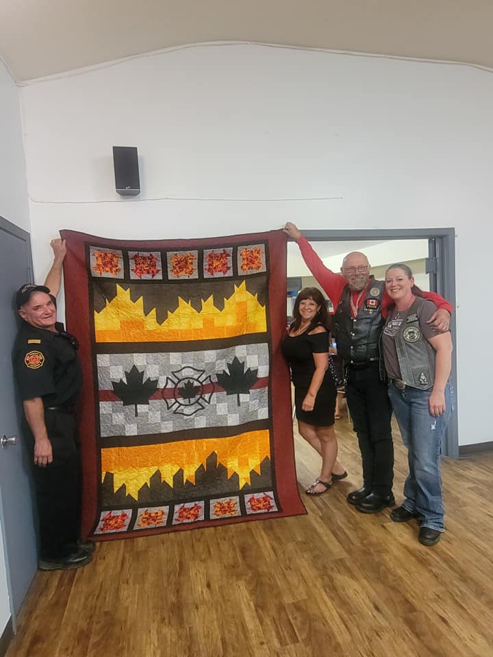 During the last presentation of the evening, retired RCMP officer, Mark Doratti called up unsuspecting Darcy Leonew to the front while highlighting Darcy’s commitment and involvement with the Humboldt Fire Department over the last 40 years, along with thanking his wife, Shirley, for her strength and support during her husband’s years of service. Following this, Darcy was gifted a commissioned quilt made by Swift Current resident, Marcie Erick, who designs and makes quilts for first responders who are receiving recognition at these events.